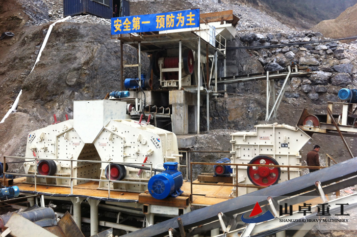 整個砂石生產(chǎn)工藝為:大塊物料經(jīng)給料機送到鄂破進行初始粉碎,粉碎后的物料經(jīng)輸送設備送到細破——反擊破或者圓錐破進行二次粉碎,然后粉碎后的物料被輸送到篩分設備進行篩分,符合粒度的成品送往成品堆,不符合要求的送回破碎機進行繼續(xù)粉碎。